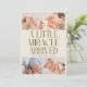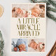 Modern Christmas theme birth announcement card featuring a bold typography text that says "a little miracle arrived" with 4 of your newborn pictures. This is a birth announcement card for the holiday seasons! Add your pictures, birth stats, and a message! The background is cream.