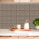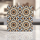 This bold mid-century modern tile features concentric circles and abstract lines in earthy brown, ochre yellow, and vintage blue tones, inspired by 1960s Scandinavian design. With its symmetrical and eye-catching layout, this tile is perfect for creating stylish backsplashes, accent walls, or retro-inspired interiors. The harmonious colour palette and geometric design make it a versatile choice for modern and vintage aesthetics alike.