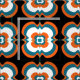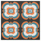 Stylish, modern, bold square repeat pattern in shades of orange, teal, black and white. Fabric design inspired by mid century retro styles; available in a choice of fabric styles and cut to lengths to suit your sewing and craft needs