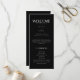 A modern and bold black and white wedding program card, designed with modern typography, and script lettering. Customise with your names, thank you message, wedding party and more. Feel free to edit further, such as changing background colours, text colours, etc., by clicking on "personalise this design," then "edit using design tool." Please message the designer if you wish to have this done for you instead.