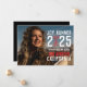 Celebrate your graduate’s milestone with this custom photo high school graduation announcement card, featuring a bold and modern design. The full-print front showcases your favourite senior photo with a striking overlay typography—your graduate’s name, school name city and state. the word “Graduate” replaces the zero in 2025 for a sleek touch. The back includes a customisable message from proud parents to share your excitement with family and friends. Perfect for high school grads!