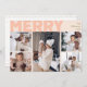 Send warm wishes this holiday season with this unique and cute, bold modern coral merry year in review five photo holiday card. Its simple and minimalist design features boho-inspired elements in light pink, pastel coral, sage green, blush, and peach hues. Celebrating the festive spirit of December, this design brings a cheerful and fun touch to any occasion. The bright pale seasonal colours and creative wording make it a perfect way to spread happiness and cheer among friends and family this winter!