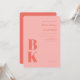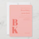 Make a bold and stylish statement with this modern pink wedding invitation featuring oversized coral monogram initials and minimalist typography. The clean layout and rounded corners create a sleek, contemporary look, perfect for modern or city weddings. A soft blush pink background paired with warm coral accents gives the invite a fresh, romantic tone.