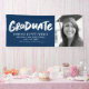 Congratulate the graduate! This banner features a place for a photo of the grad along with a trendy and modern "graduate" in bold brushy type and custom text that can include name, school, year and future plans in white. Makes a great graduation yard sign to celebrate your senior and also works and graduation party decor. The default colour is a navy blue, but that's editable to your school colour by clicking "customise." Check out the Lea Delaveris Design graduation collection for coordinating items and other colour options.