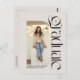 Modern and stylish, this two-photo graduation announcement and graduation party invitation postcard is perfect for the bold and trendy graduate. Featuring a unique arched photo on the front with bold modern type, this design also has room on the back for a second photo and graduation party invitation text. The text on the back can also be used for a thank you message, future plans and more. This combination graduation announcement and graduation party invitation is perfect for high school or college grads and works well for guys or girls. The front photo is vertical on an off-white background and the back is horizontal. Find coordinating pieces and more colours in the collection by Lea Delaveris Design.
