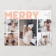 Send warm wishes this holiday season with this unique and cute, bold modern merry year in review five photo holiday postcard. Its simple and minimalist design features boho-inspired elements in light pink, pastel coral, sage green, blush, and peach hues. Celebrating the festive spirit of December, this design brings a cheerful and fun touch to any occasion. The bright pale seasonal colours and creative wording make it a perfect way to spread happiness and cheer among friends and family this winter!