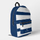 Bold Modern Navy Blue Striped Pattern with Heart Printed Backpack