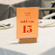 Bold Modern Orange Sunset Monogram Wedding Seat Table Number