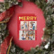 Send warm wishes this holiday season with this unique and cute, bold modern red vertical three photo merry gold foil holiday card. Its simple and minimalist design features boho-inspired elements in gold foil. Celebrating the festive spirit of December, this design brings a cheerful and fun touch to any occasion. The gold seasonal colours and creative wording make it a perfect way to spread happiness and cheer among friends and family this winter!