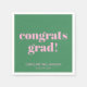 This graduation party napkin features oversized pink "congrats grad!" lettering on a bold green background with name and class year below. The simple, cheerful two-color design is fun and easy to style with a green and pink party table. Name and class year are fully editable.