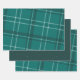 A bold modern take on a classic holiday plaid makes this wrapping paper set perfect way for both traditional and unconventional gift givers. The vivid teal blue green background with the tilted black and white checks is chic and stylish. Also includes a coordinating sheet dotted with stars. Will look fantastic on all your gifts under the tree perfectly coordinated with your Christmas decor.