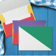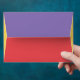 Elevate your stationery game with our vibrant Bold Colour Envelope! This eye-catching envelope features a bold colour maximalist scheme with solid green and white on the front and striking purple, yellow, and red sections on the back. Inside, the opening reveals stylish light green and white stripe lines, adding a touch of modern flair.