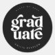 Bold, modern and stylish graduation sticker feature simple modern type on a black background with the graduate's name and graduating class.
