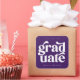 Bold, modern and stylish graduation sticker feature simple modern type on a purple background with the graduate's name and graduating class.