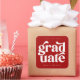 Bold, modern and stylish graduation sticker feature simple modern type on a red background with the graduate's name and graduating class.