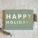 Happy Holidays! Send family and friends your holiday greetings with this customisable sage green and gold holiday card. It features a bold typography. Personalise by adding your details. This gold foil holiday card is available in other foil colours and cardstock.