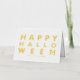 Send family and friends your Halloween greetings with this customisable white and gold Happy Halloween card. It features a bold typography. Personalise by adding your details. This gold foil Halloween card is available in other foil colours and cardstock.
