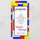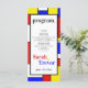 Program of events - A fun and funky retro design that's as fun as you are - a nostalgic look to the Sixties with a cool bold font paired with primary colours of yellow, blue and red outlined in black in geometric shapes in the style of Mondrian. Easy to customise with your specific details.