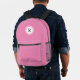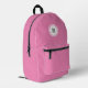 Cool pink backpack features a bold black monogram in a white circle with a narrow pink border and a thin outer white ring. Add your initial in the sidebar.