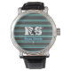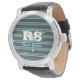 Bold Monogram & Name, Lt. Teal Lines on Dark Grey Watch