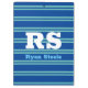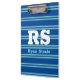 Bold Monogram & Name, Lt. Teal Lines on Deep Blue Clipboard
