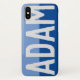 Have your choice of name shown boldly on a two-tone phone case. Example shows the name Adam. Personalise with your choice of short name.