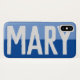 Have your choice of name shown boldly on a two-tone phone case. Example shows the name Mary. Personalise with your choice of short name.