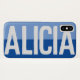 Have your choice of name shown boldly on a two-tone phone case. Example shows the name Alicia. Personalise with your choice of short name.