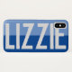 Have your choice of name shown boldly on a two-tone phone case. Example shows the name Lizzie. Personalise with your choice of short name.