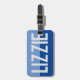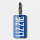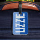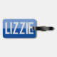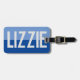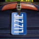 First name luggage tag. Have your choice of name shown boldly on a two-tone luggage tag. Example shows the name Lizzie. Personalise with your choice of short name.