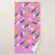 Bold name monogram pink floral abstract pattern bath towel