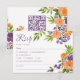 Bold Orange and Purple Floral QR Code Wedding RSVP Card