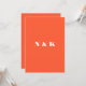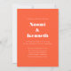 This wedding invitation features oversized white bold typography on a rich persimmon orange background with your first names on the front and your initials printed large on the back. It's bold and graphic and really fun — perfect for a couple who wants something colourful and confident that stands out from the crowd. The two sided design makes it feel really special and intentional. Just add your names, date, and venue and you're set.