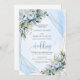 Bold Pastel Blue White Silver Peonies Wedding Invitation