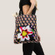 This bold and bright design really stands out in the crowd as something unique and different. It's large central red and white flower has a pretty yellow centre and is surrounded by smaller flowers of the same design, the design on the back is a large image of the same pretty flower.