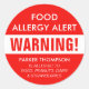 Bold Personalised Food Allergy Alert Attention Stickers.