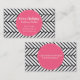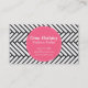 Striking design of black and white herringbone pattern with a bright pink stitch effect circle for personalisation. This business card with its bold choice of colours and fusion of elements is ideal for anyone who is looking for a business card design in the fields of fashion, creativity or arts. Design can be easily personalised to your details. The reverse side includes space for a personal or inspiring quote or marketing message. Designed by Rusty Doodle.