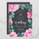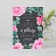 Spring summer elegant oversized bright pink flowers, eucalyptus and sage green floral watercolor wedding invitation with a beautiful script calligraphy real silver foil on grey. Add your photo! Perfect romantic and elegant wedding invite.