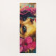 Bold and vibrant, this artistic portrait showcases a woman's captivating gaze with striking blue eyes and vibrant pink hibiscus floral accents. The splashes of colour in the background bring an abstract, modern twist. This image exudes emotion and creativity, perfect for those who appreciate expressive and colourful artwork. This yoga mat is a perfect gift for your fitness pal, birthday gift, or Christmas gift.