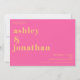 Modern minimal wedding invitation featuring bold typography in bright pink and orange colour style.