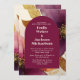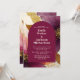 This modern wedding invitation features a bold burgundy arch design layered over a luxurious alcohol-ink background in deep plum and gold tones. With clean typography and a striking, frameless arch, it creates a sleek and contemporary look while still exuding elegance. Perfect for couples who want a dramatic, fashion-forward invitation that sets the tone for a sophisticated and stylish celebration. Fully customisable with your wedding details.