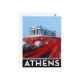 Celebrate the history of Athens, Greece, with this striking and dramatic postcard. The design features a bold, graphic illustration of the magnificent Parthenon standing atop the Acropolis. The abstract, vibrant red foreground contrasts sharply with the white temple and the patterned blue sky, creating a modern pop art feel. The bottom border features the classic Greek key pattern and the clear, block lettering declares "ATHENS". This card is perfect for art lovers, history buffs, or anyone who appreciates a unique, modern interpretation of a classical landmark.