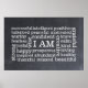 I AM is written in the centre, surrounded by positive words and qualities in horizontal and vertical orientation. Easy to read modern font lettering, shown in white to resemble white chalk with a faux blackboard style background. Success, peace, confidence, love, health, gratitude and strength, among other good attributes are included. Read each word aloud in the morning and start your day off feeling empowered and full of good vibes. I am grateful! I am abundant!