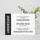 Here's a bold, modern card for notifying your guests if it's become necessary to change your wedding date. Use the template fields to add your personal details and make this unique, simple design your own. A colour block along the left is black, matching the text and back of the card; "ANNOUNCEMENT" appears in bold white over this strip on the left. All fonts and colours are also editable. Please reach out with any special requests or for customising assistance. Other pieces with alternate wording are also available in the collection.