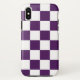 Protect your iPhone X with a rugged Case-Mate Tough case featuring a bold purple and white chequered pattern made of rows of alternating white and dark purple squares.