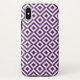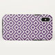 Protect your iPhone X with an impact resistant Case-Mate Tough case featuring a bold regal purple and white geometric pattern. The ornamental design has purple diamonds with white borders that are surrounded by royal purple meanders which angle around them. White zigzags separate the winding purple paths and offset diamonds.