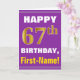 Bold, Purple, Faux Gold 67th Birthday w/ Name Card