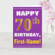 Bold, Purple, Faux Gold 70th Birthday w/ Name Card