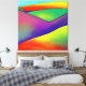 Digital watercolor landscape design in vibrant rainbow colours and textures with a curved hills and lines.