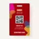This modern visitor pass features a vibrant red background adorned with abstract colorful blobs, creating a dynamic and eye-catching design. It includes a prominent QR code for easy access or information retrieval, along with dedicated fields for 'Validity' dates and 'Contact Us' details. A space for 'Department Here' allows for easy identification within an organization. This design is perfect for businesses seeking a stylish and functional way to manage visitor access and information, ensuring a professional impression from the moment they arrive.